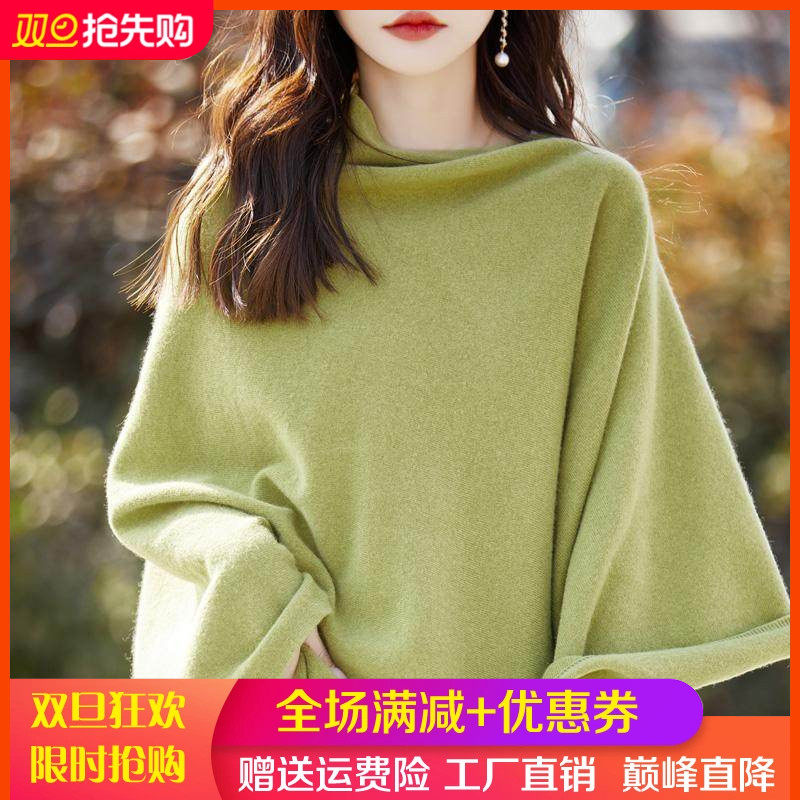 2025新款流苏毛衣女秋冬中长款宽松高领斗篷披肩外套头针织蝙蝠衫
