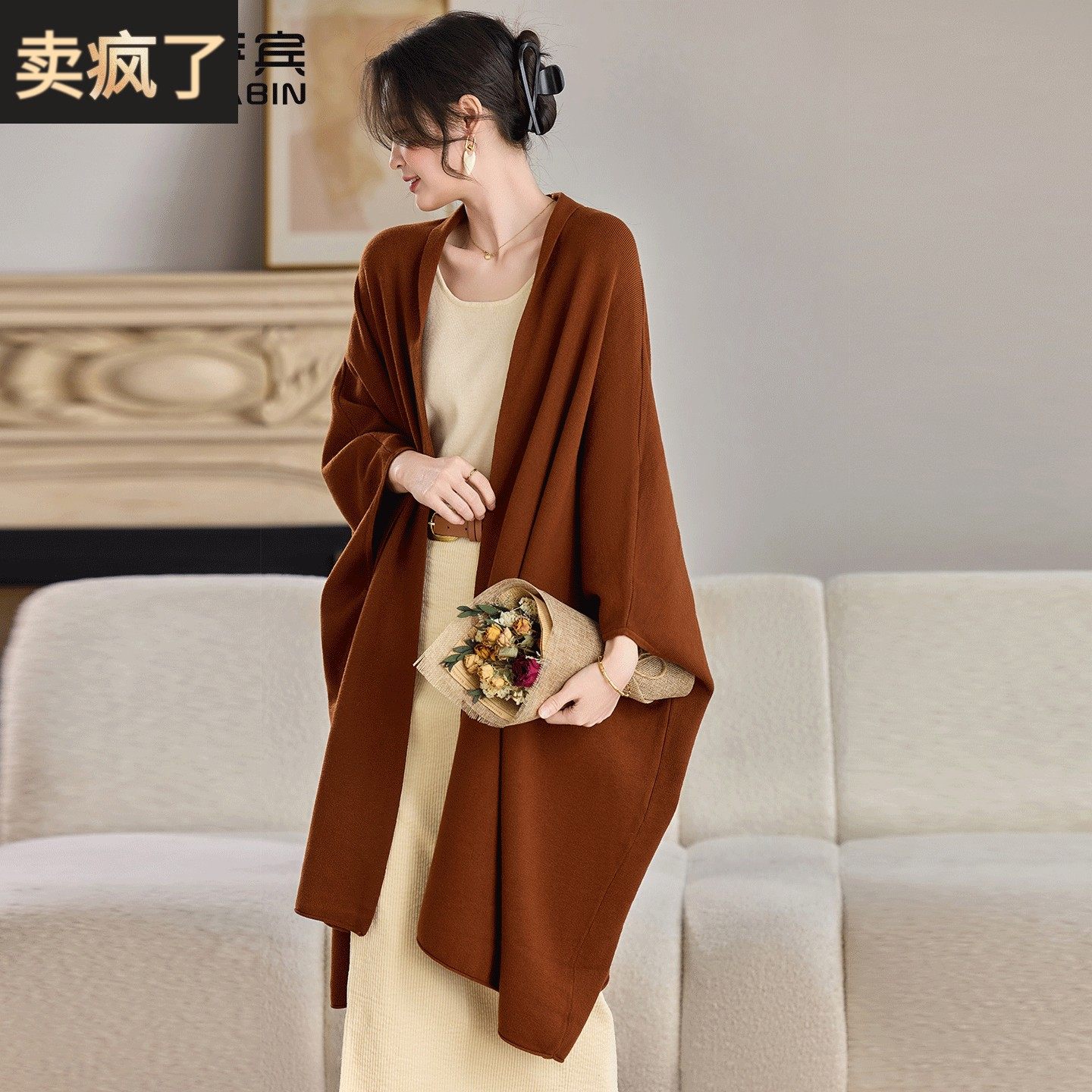 宽松慵懒斗篷披肩外搭女春秋冬高端针织开衫蝙蝠袖中长款毛衣外套