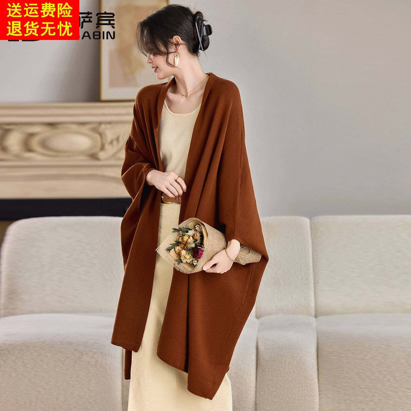 斗篷披肩女新款羊绒大衣外套中长款洋气开衫春秋冬厚羊毛针织毛衣