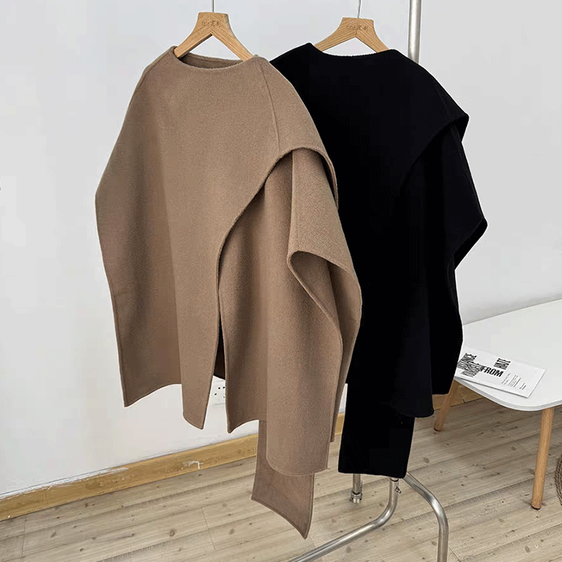 双面呢子披肩外套COS风中长款不规则宽松轻奢小众毛呢斗篷女秋冬