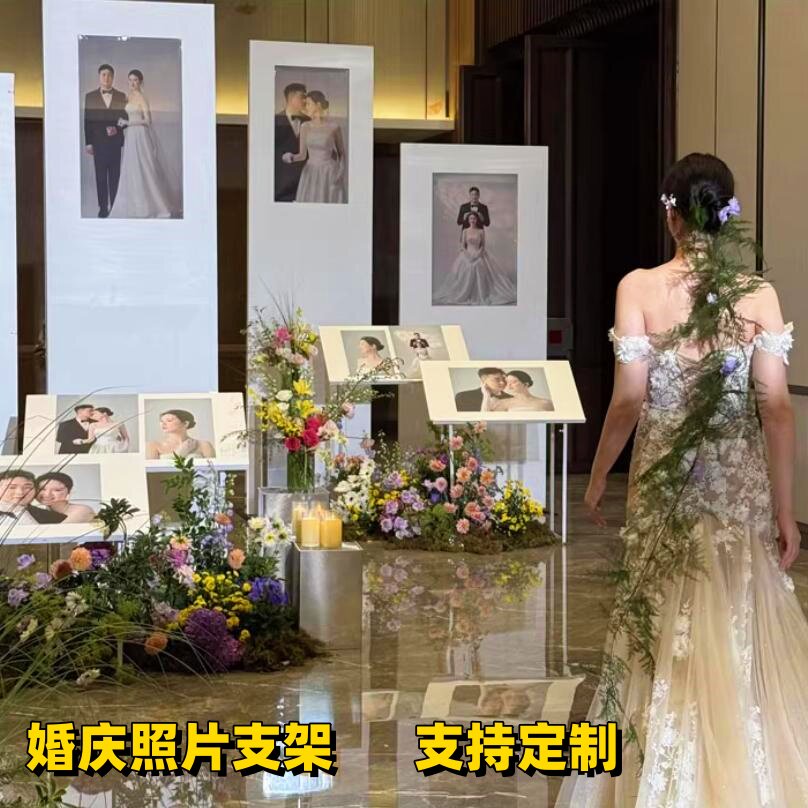 婚礼照片展示区铁艺支架韩式婚庆迎宾区背景装饰白色照片架子定制