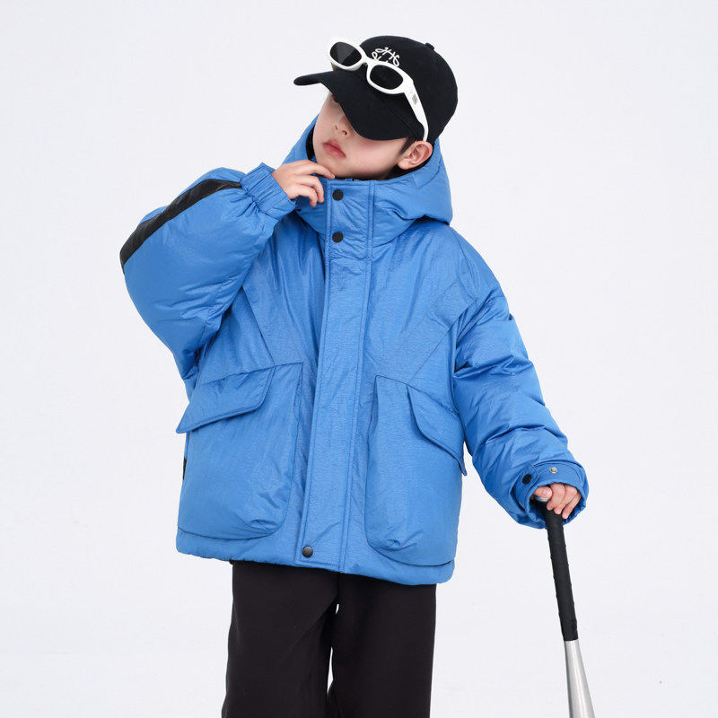 男大童冬装加厚撞色工装羽绒服2025新款儿童冬季运动防寒免洗外套
