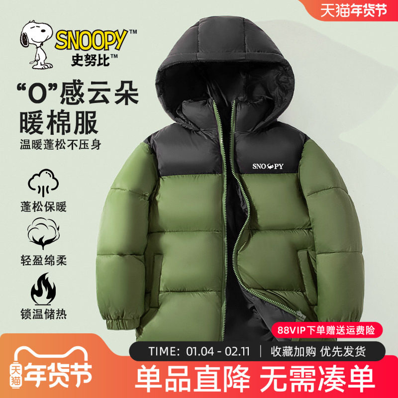 史努比男童棉服冬季加厚棉衣2026新款男大童冬装外套儿童夹棉外套
