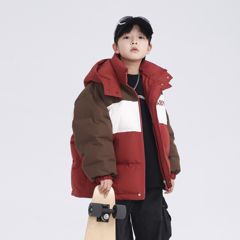 男大童冬装炸街撞色面包羽绒服2025新款儿童冬季加厚运动免洗外套
