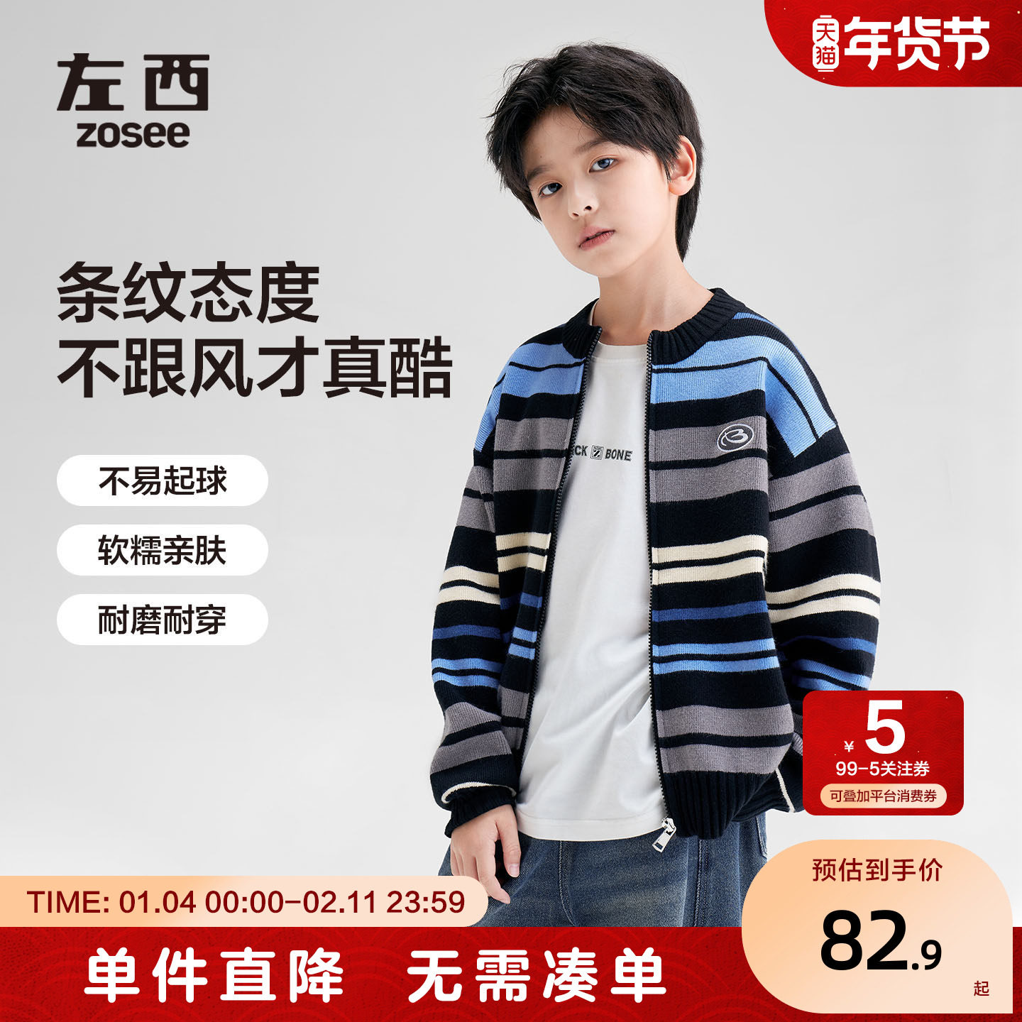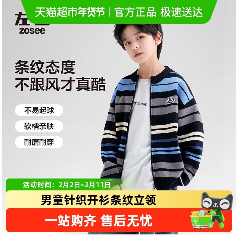 左西儿童毛衣外套春秋款2026新款男童针织条纹开衫洋气男大童冬装