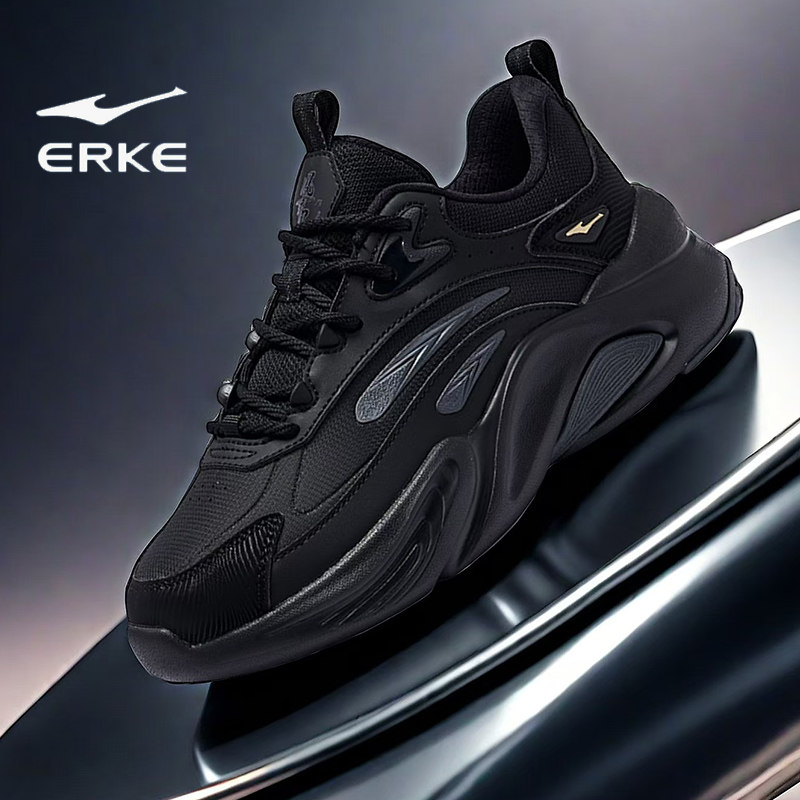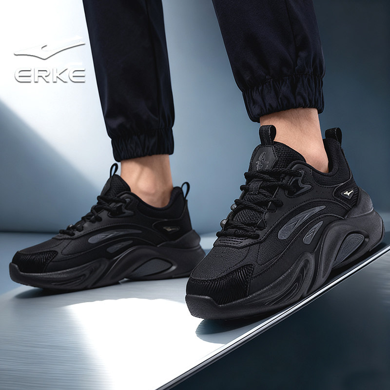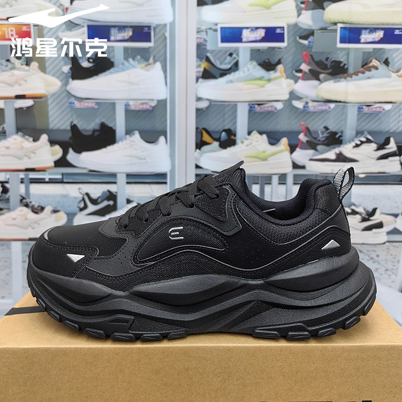 鸿星尔克男鞋2025秋冬新款减震耐磨运动鞋男士黑色潮流复古休闲鞋