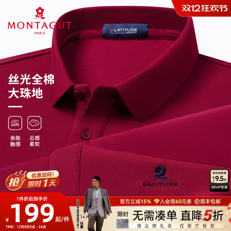 [100%长绒棉]梦特娇男士长袖Polo衫翻领春秋丝光纯棉T恤爸爸婚宴J