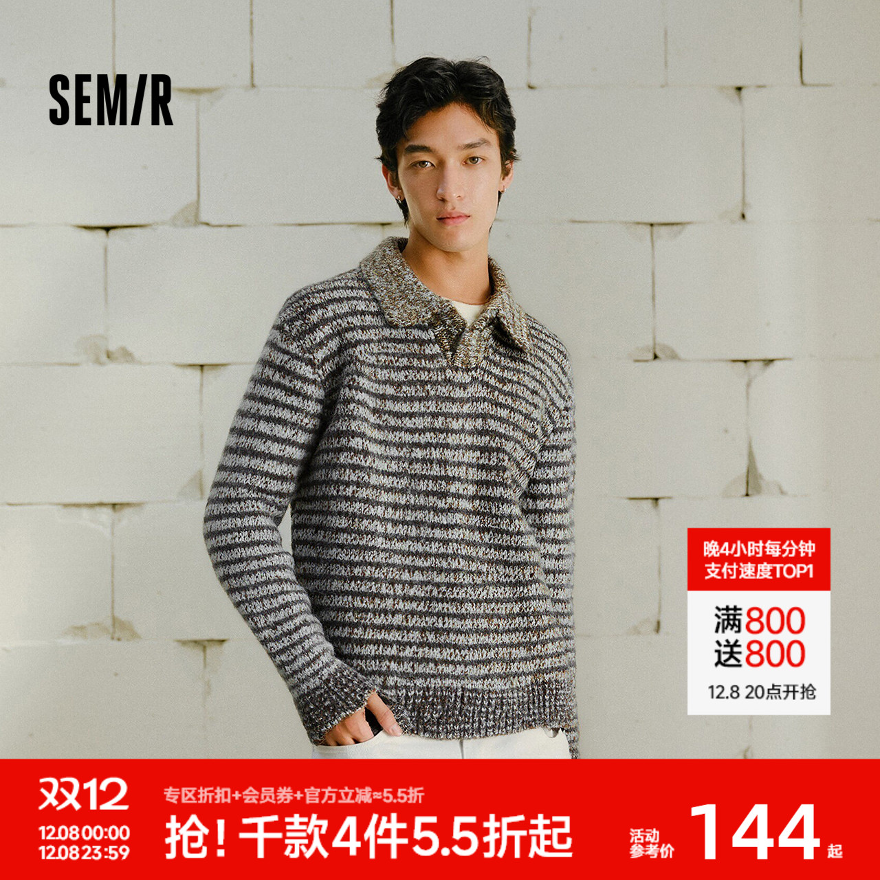森马毛衫男冬季条纹POLO毛衣2025新款花纱复古提花情侣针织衫宽松