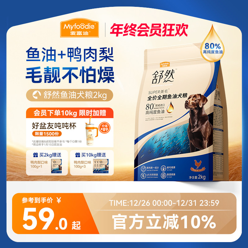 麦富迪舒然鱼油美毛狗粮鸭肉梨鸡肉小型成犬幼犬泰迪金毛通用犬粮