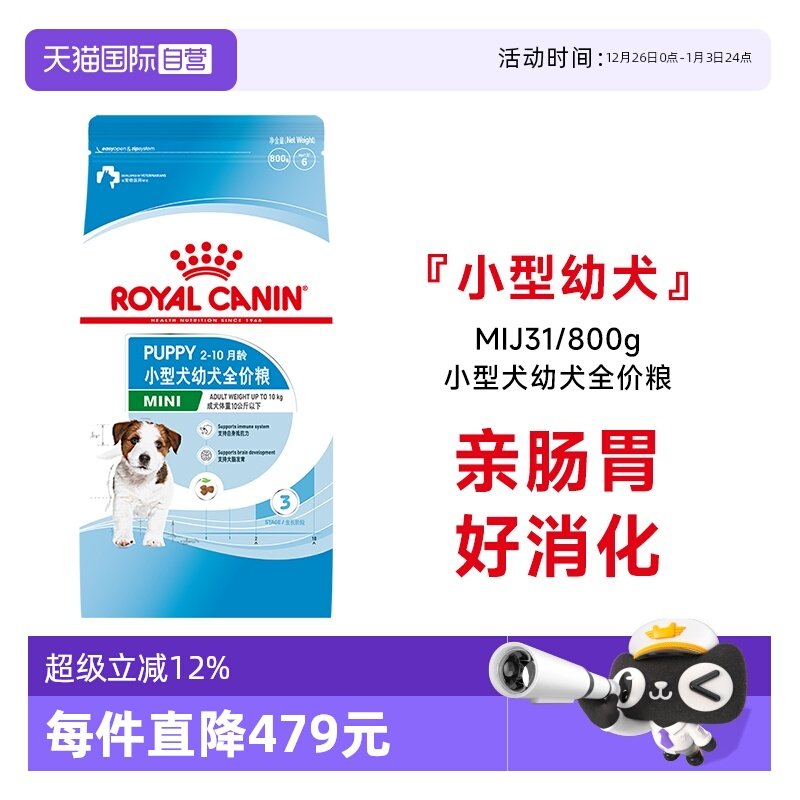 【自营】皇家狗粮小型犬幼犬全价粮营养通用粮调理肠胃MIJ31/800g