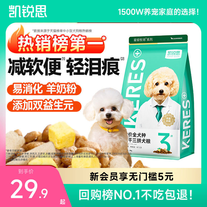凯锐思20%牛肉粒双拼狗粮成犬幼犬通用型泰迪比熊博美金毛专用粮