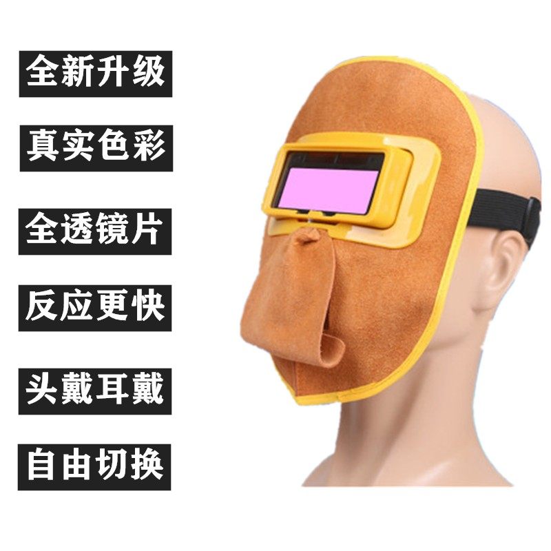 牛皮面罩太阳能自动变光电焊面罩变光电焊帽气保焊氩弧焊面罩眼镜