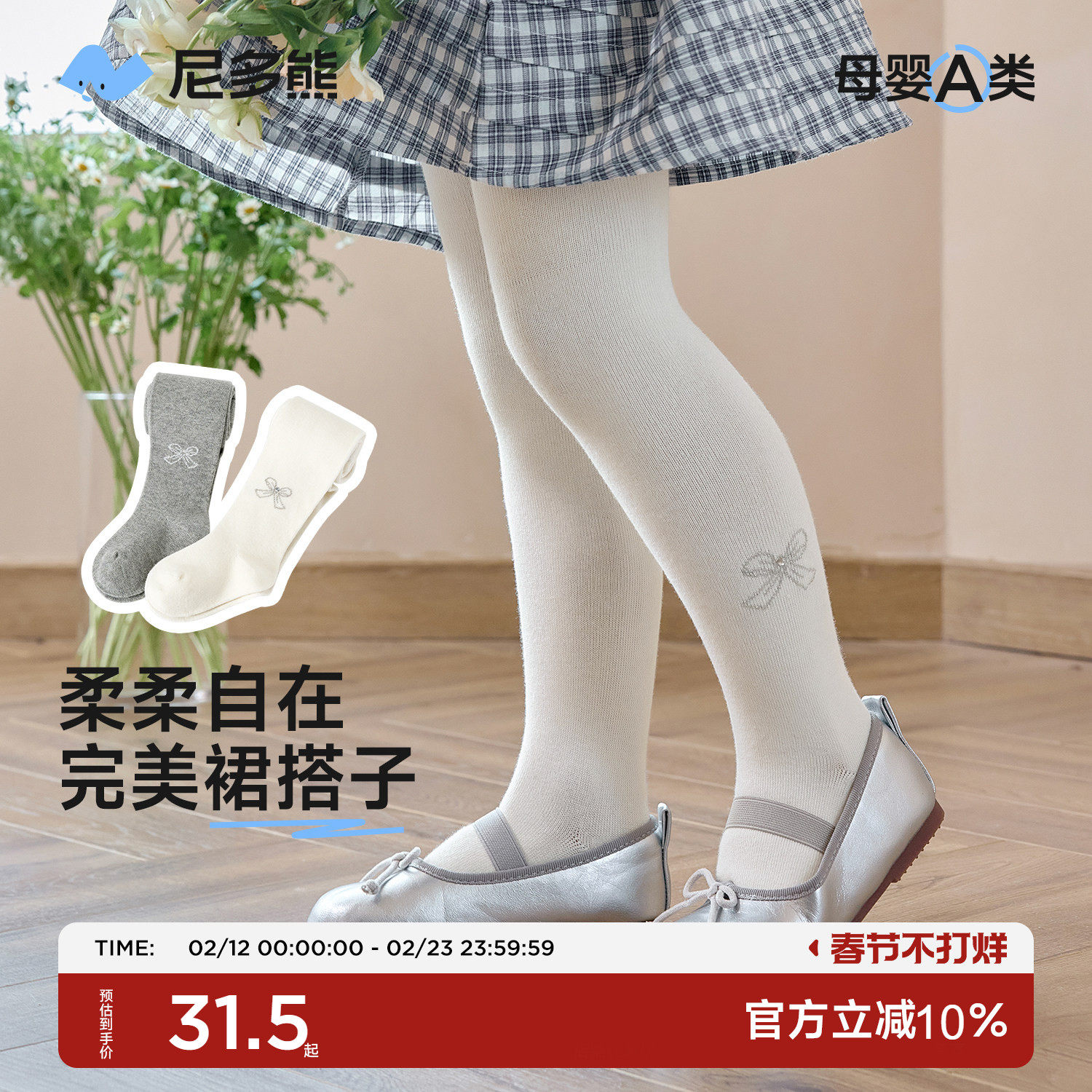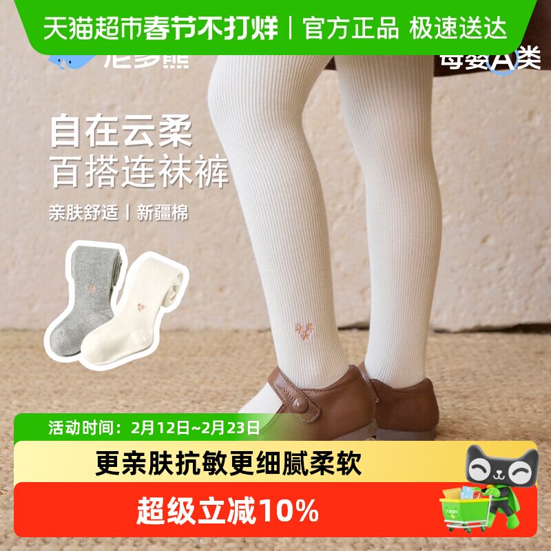 尼多熊2025儿童连裤袜秋冬女童裤袜宝宝打底袜婴儿打底裤白色春秋