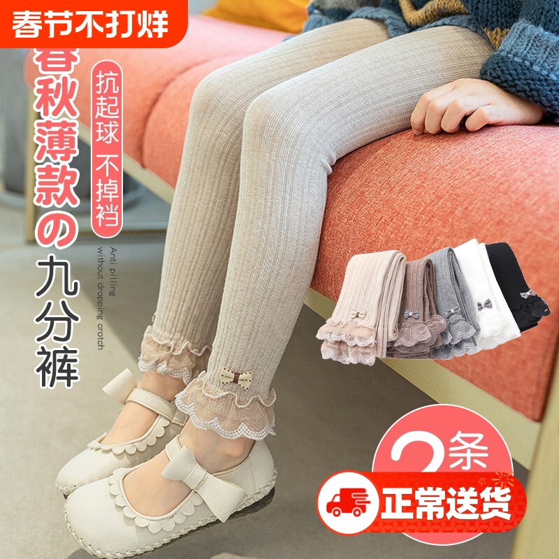 儿童打底裤春秋纯棉女童九分连裤袜韩版纯色百搭女宝宝打底袜秋季