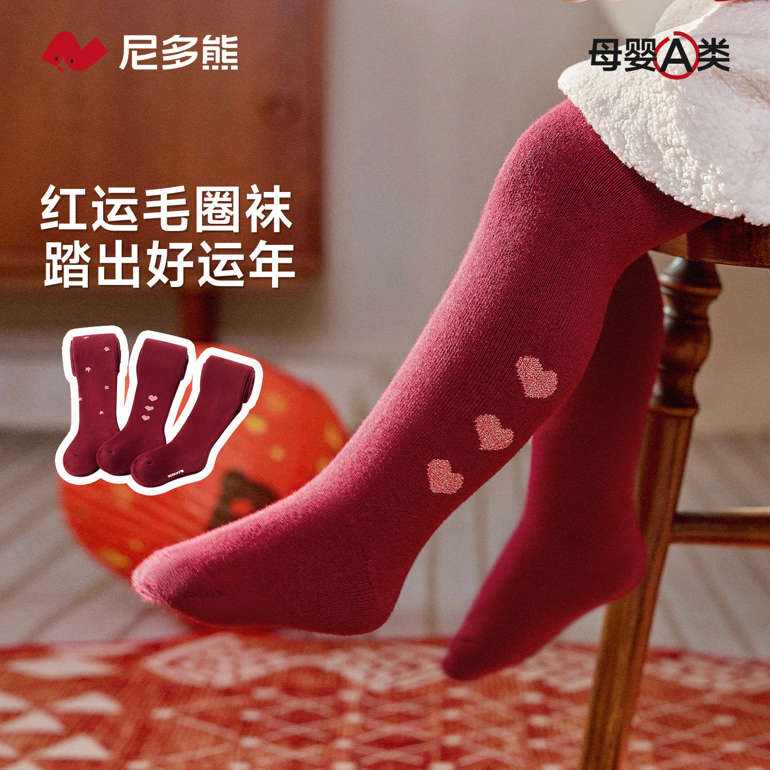 尼多熊儿童连裤袜新年秋冬女童裤袜冬季加厚宝宝打底袜红色打底裤