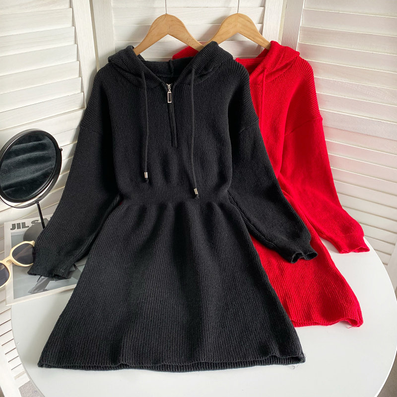 针织连衣裙女秋冬韩版修身包臀高领内搭显瘦加厚打底裙中长款毛衣