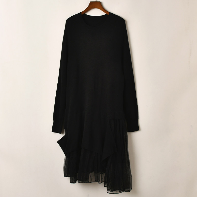 秋冬新款韩版女装毛衣裙针织蕾丝拼接蓬蓬裙假两件修身打底连衣裙