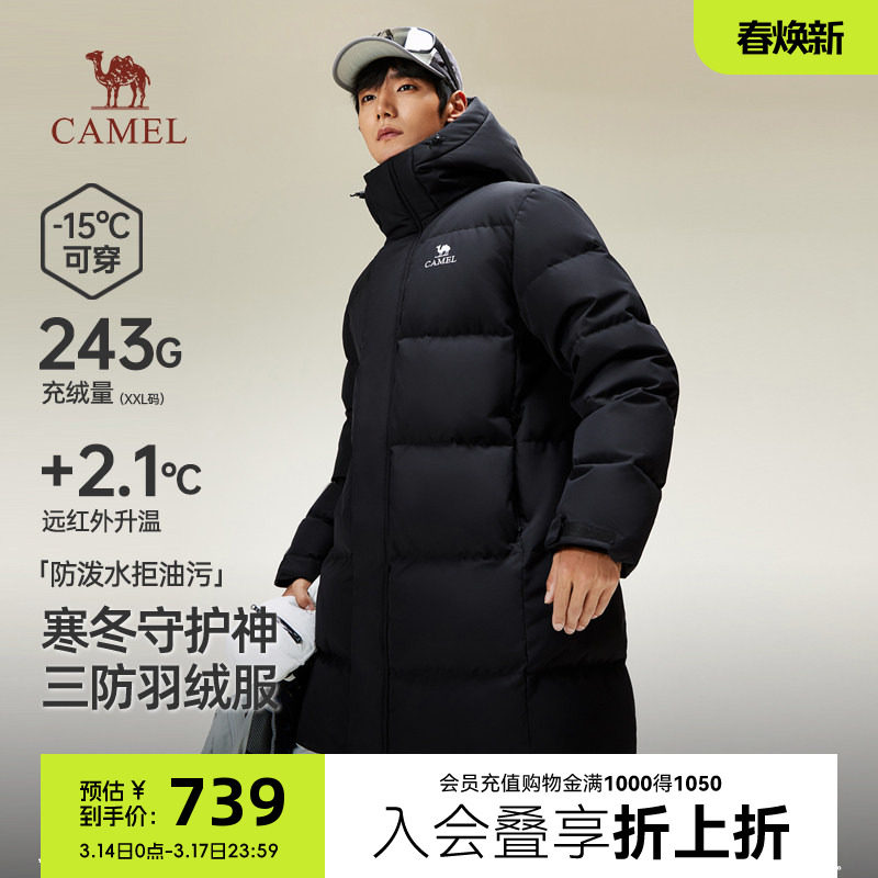 骆驼男士羽绒服正品冬季新款户外三防宽松中长款加厚黑色羽绒外套