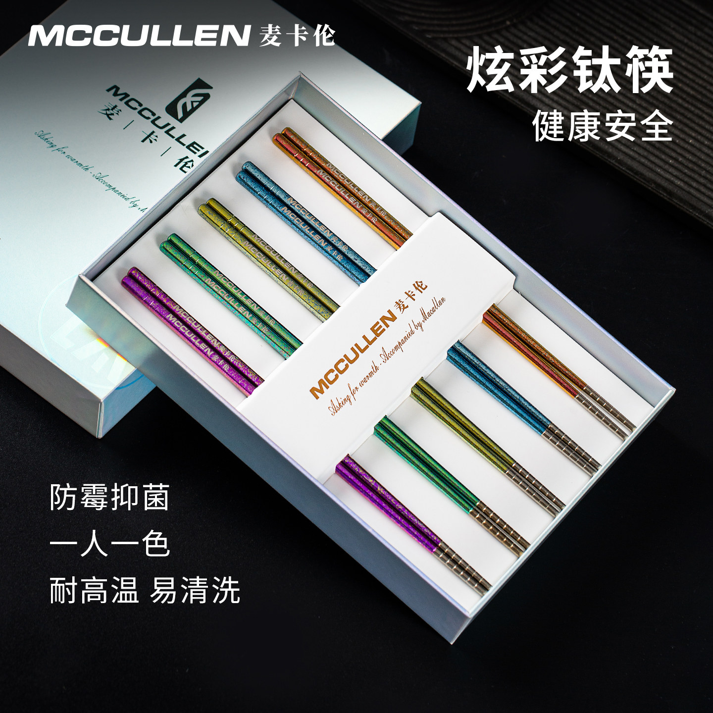 麦卡伦纯钛炫彩筷子家用户外防滑筷子轻奢高档餐具分餐专用筷送礼