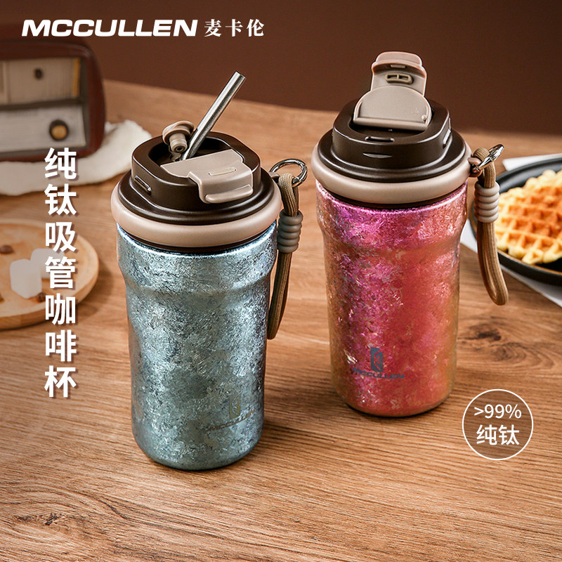麦卡伦双层纯钛咖啡杯吸管杯双饮口钛水杯男女士情侣生日礼物水杯