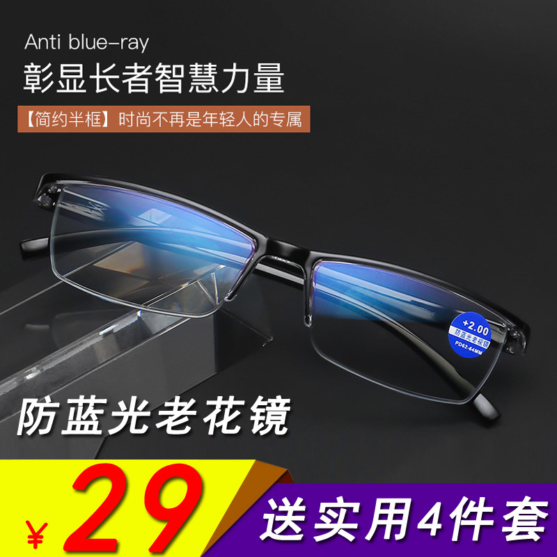 防蓝光防辐射老花镜男商务半框远视镜女时尚高清老光眼睛老花眼镜