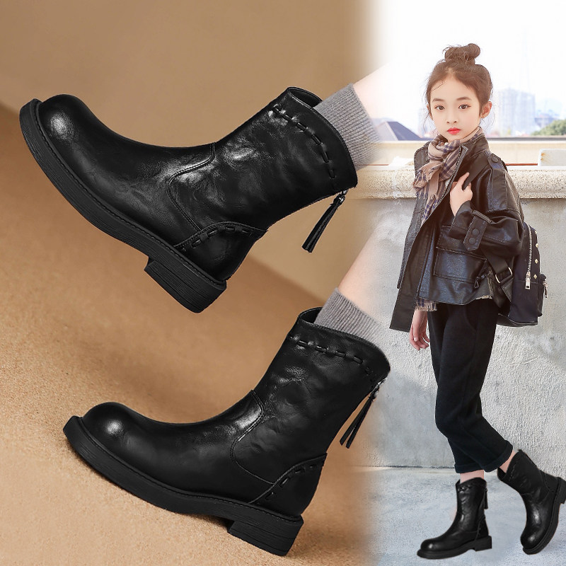 女童靴子2025冬季加绒保暖儿童马丁靴复古女孩短靴黑色百搭英伦风