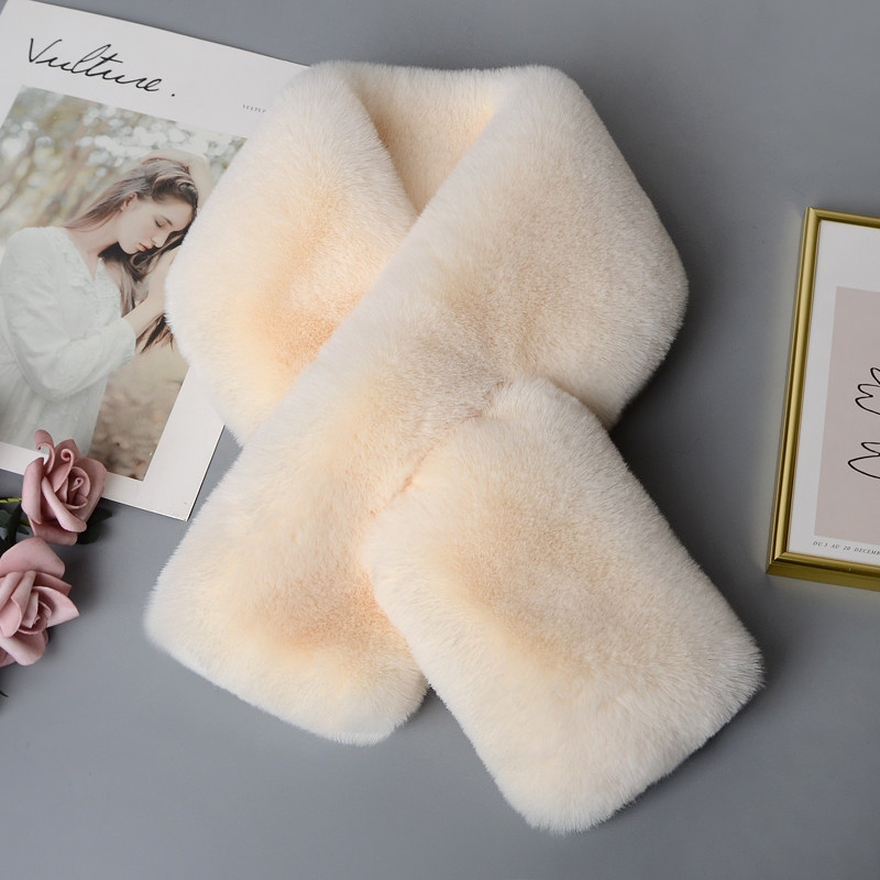 新款仿獭兔毛围脖女士冬季加长加厚保暖脖套百搭皮草交叉毛绒围巾
