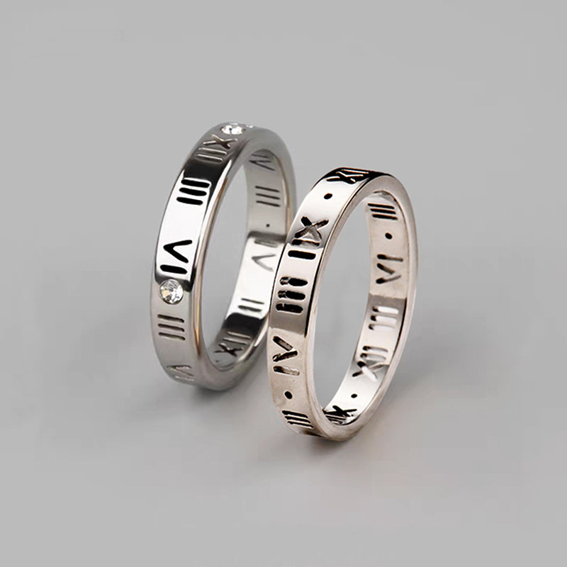 罗马数字戒指女小众设计高级感素圈情侣对戒钛钢戒指男尾戒食指环