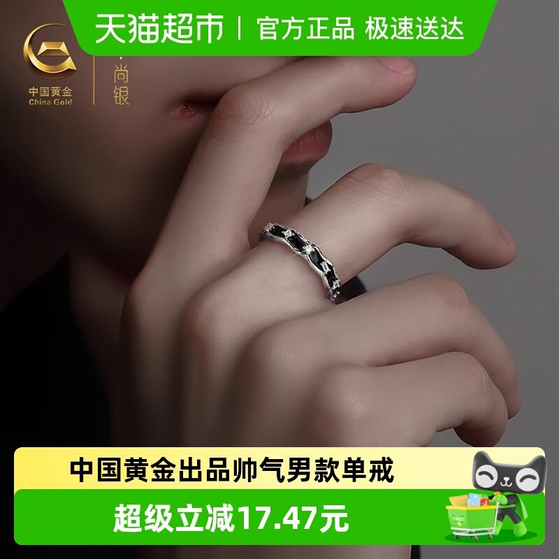 中国黄金珍尚银纯银戒指男尾戒高级感指环小众新年礼物送男友S925