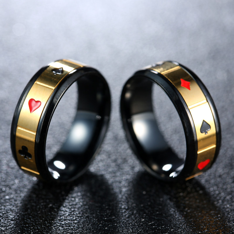 霸气扑克牌戒指男士个性嘻哈食指环戒子单身潮男尾戒学生饰品配饰