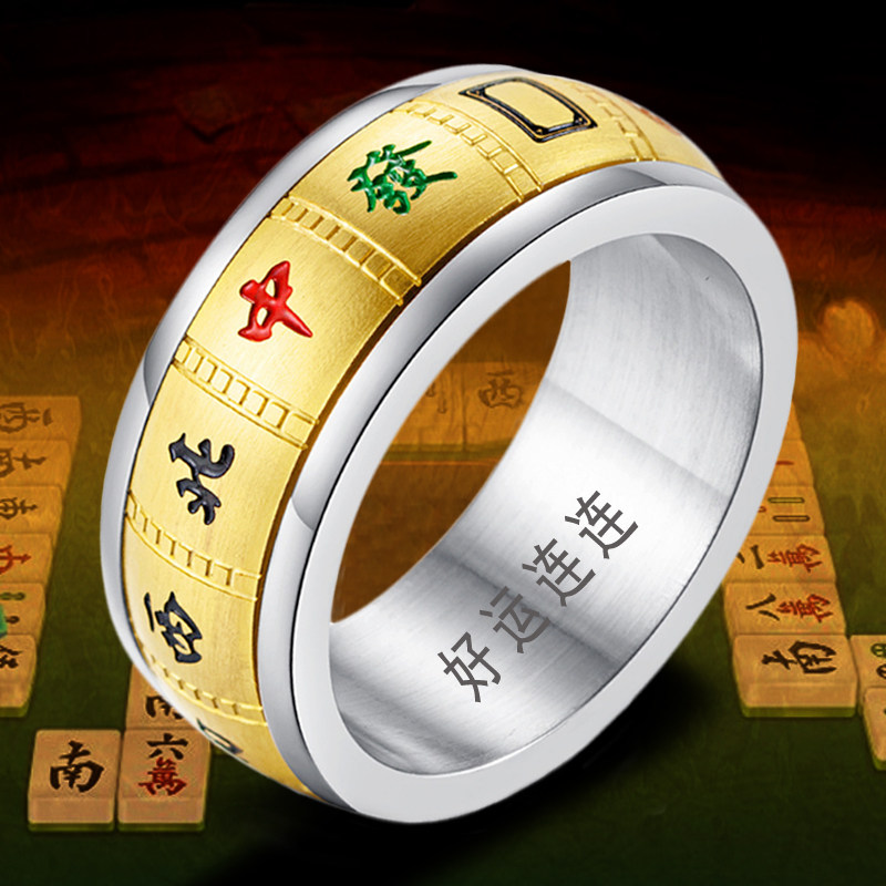 个性创意麻将戒指男士韩版钛钢食指环单身潮男尾戒学生戒子配饰品