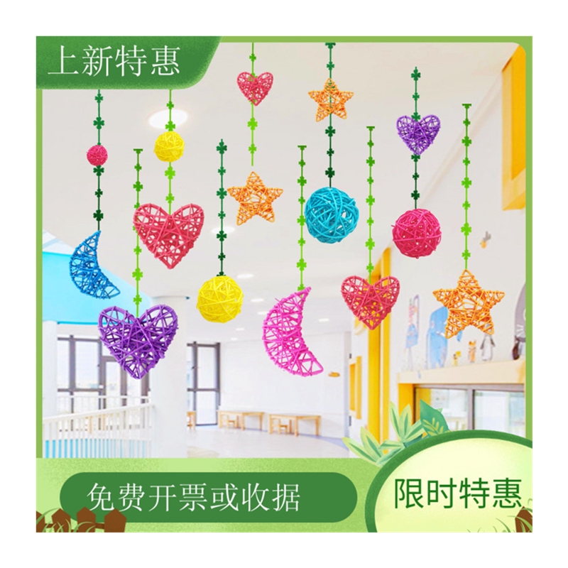 极速幼儿园装饰挂饰吊饰教v室走廊环境布置材料空中创意柳条彩藤