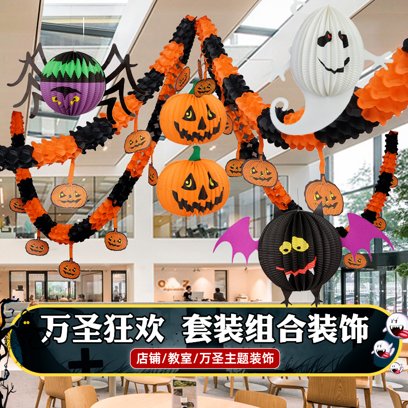 万圣节装饰餐厅幼儿园前台门店门口室内拉花吊饰挂饰挂件门头布置
