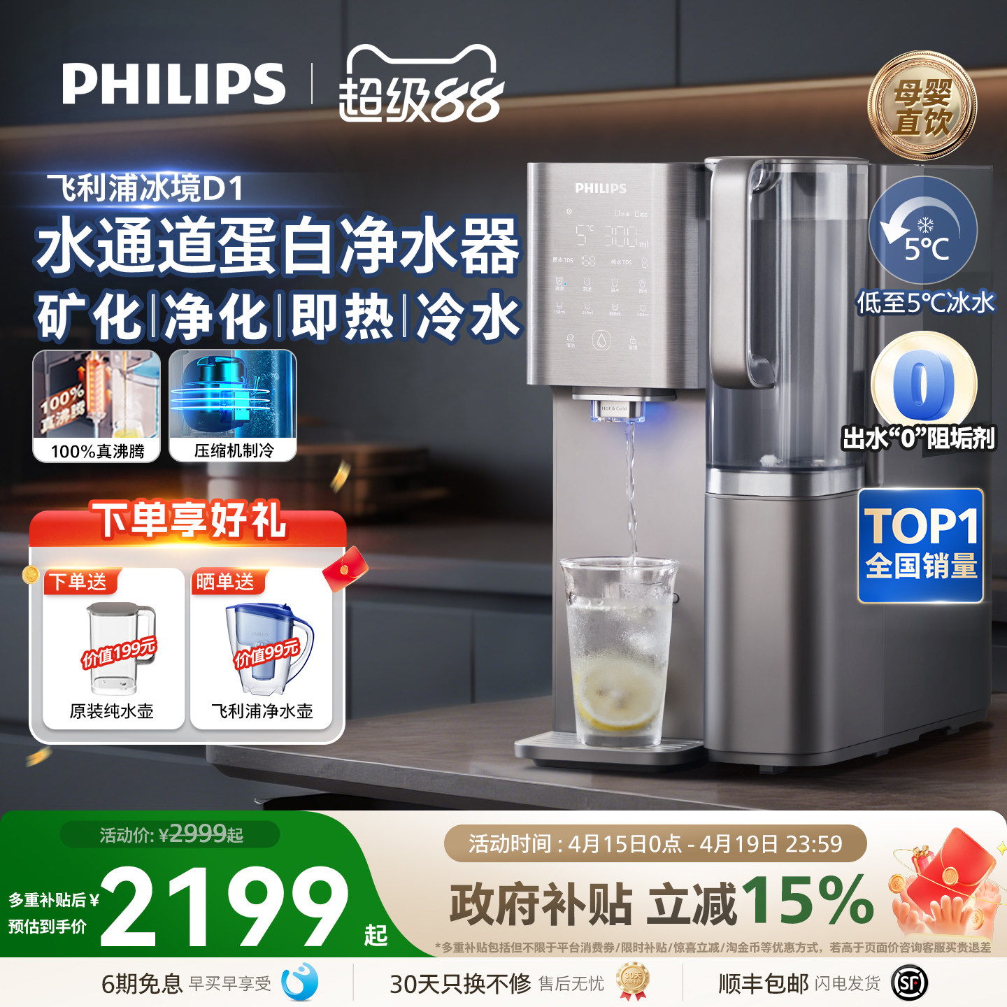 飞利浦即热饮水机家用净水器制冷冰水热水台式直饮净饮机冰境D1