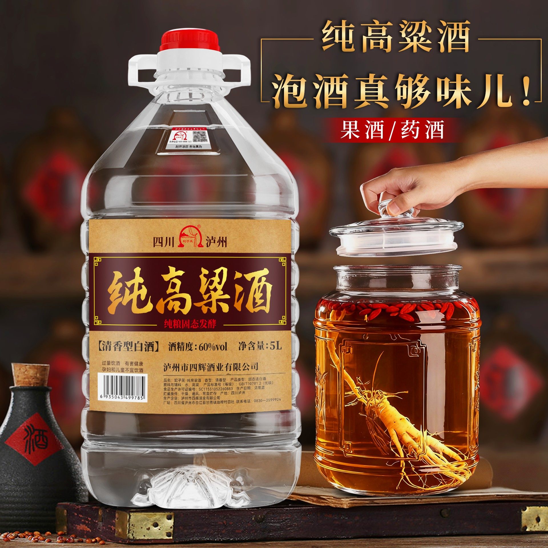 泸州纯粮食高度白酒60度5斤桶装高粱原浆老窖泡酒专用自酿散装酒