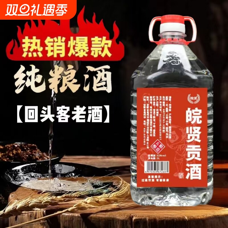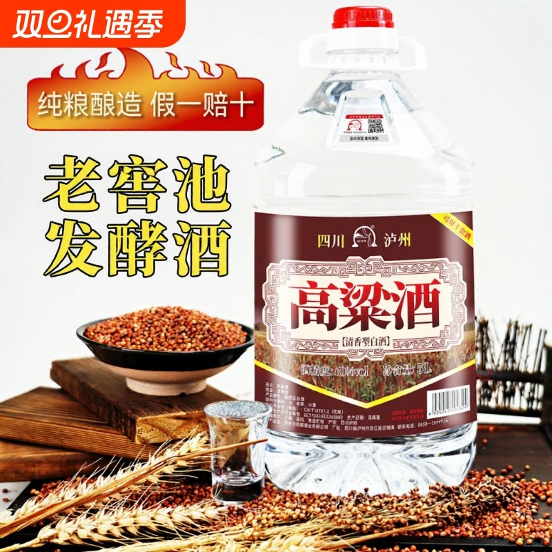 四川纯粮食桶装白酒52度足5.5L高粱原浆老酒泡酒浓香型60度赠试饮