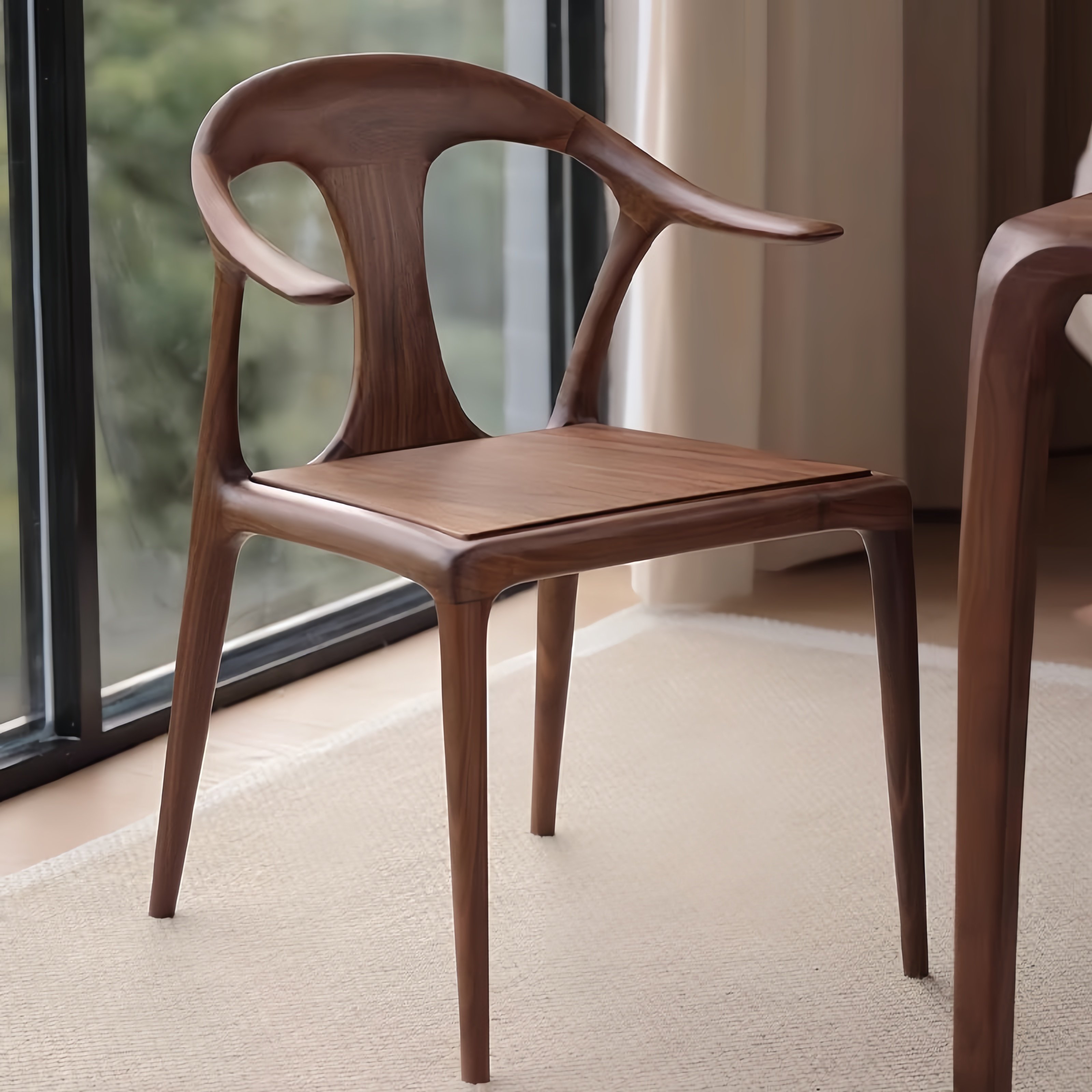 山隐造物卜落靠背椅北欧风格家具黑胡樱桃纯全实木餐休闲椅咖啡椅