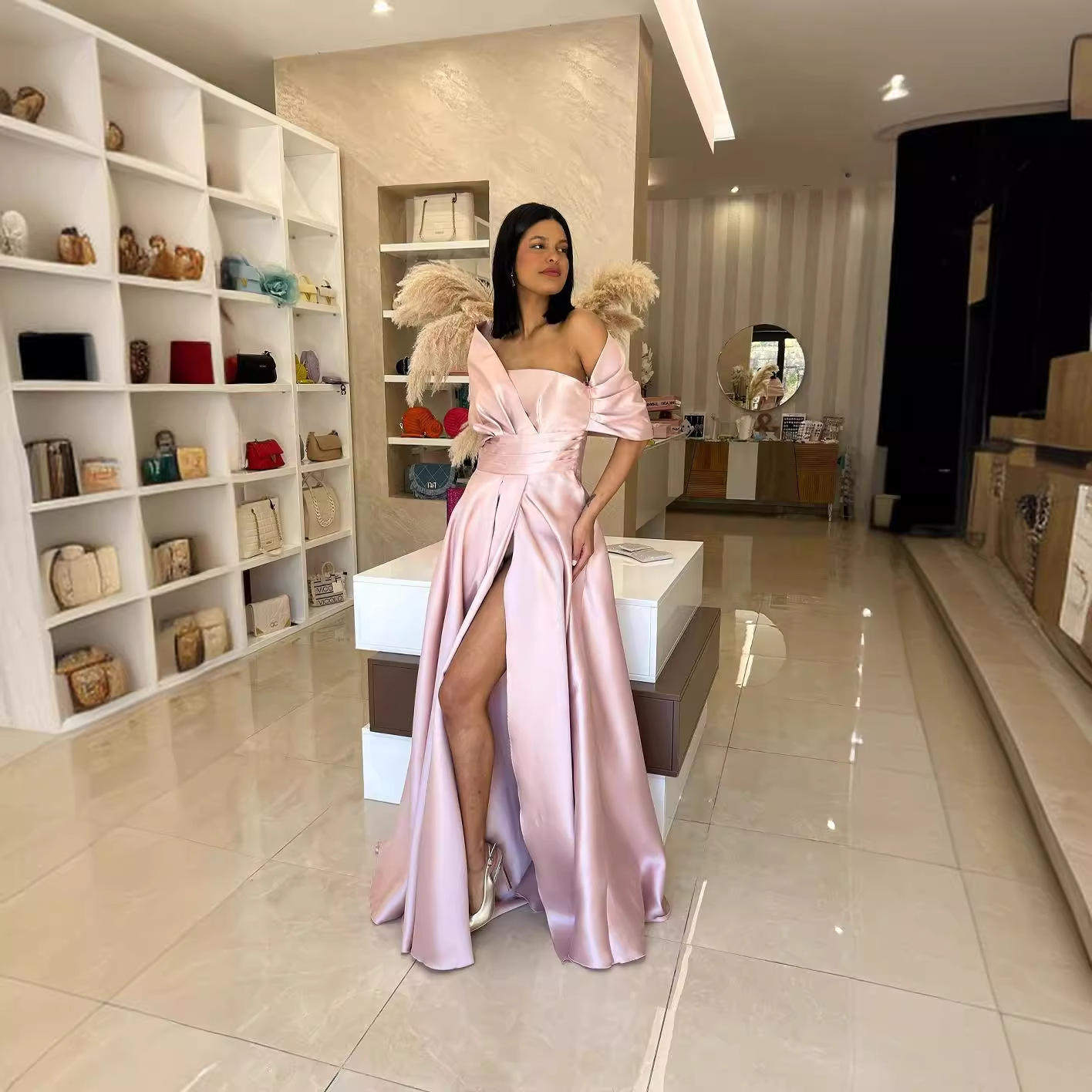 女款2024新夏季礼服 欧美深半边领ebay色丁连衣裙2024年夏季