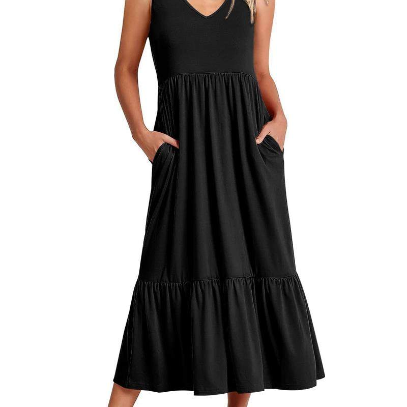 夏季女款欧美跨境亚马逊速卖通独立站V领吊带中长裙百褶女连衣裙
