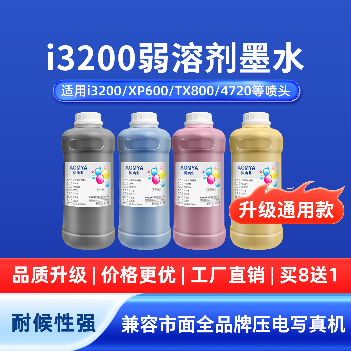 奥美亚户外弱溶剂墨水户外写真机无味墨水压电油性适用爱普生五代头七代头十代头XP600喷头4720平板i3200墨水