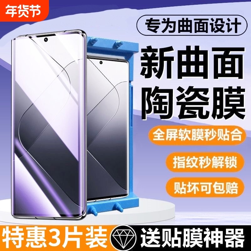 适用小米15陶瓷膜13Ultra/14/12x/11pro/10s手机膜Civi/1S/2/3/4/Mix4红米K80k70E60/50+Turbo4/note15曲面膜