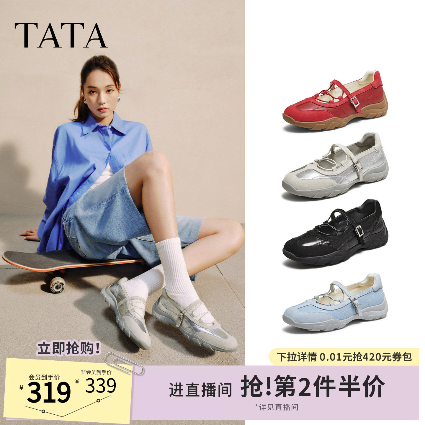 - 方头一字扣单鞋