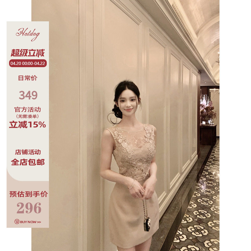 Hotdog 热狗很辣【藤蔓玉绕】纯欲镂空露背气质裸粉色蕾丝连衣裙