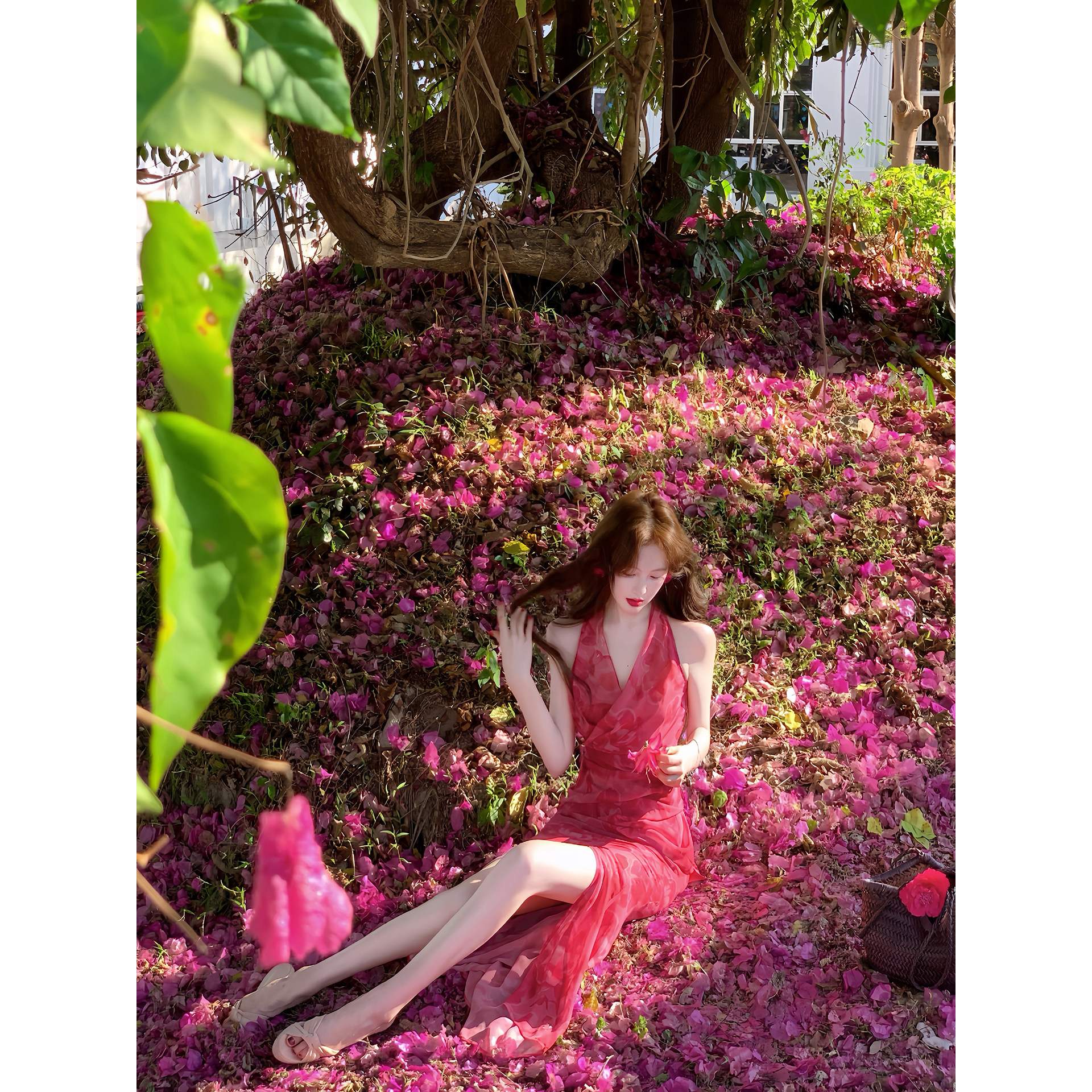 一颗甜桃yikett《很正很正的红》夏季V领吊带连衣裙女显瘦连身裙