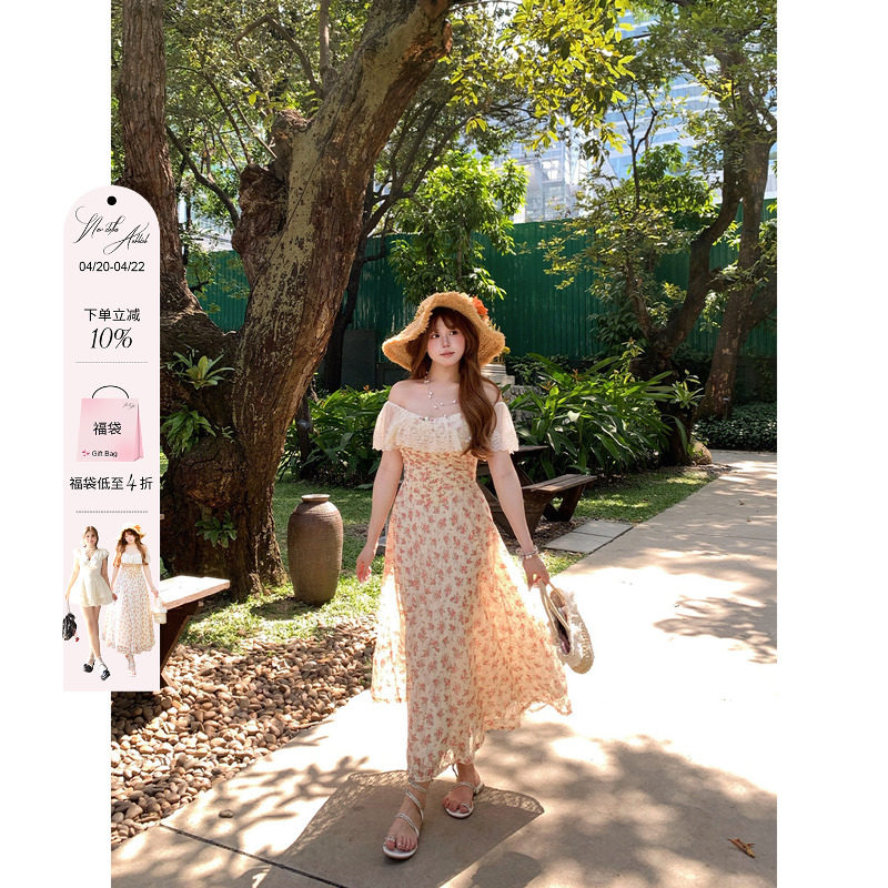 Middletone | 铂林花事 法式碎花抹胸连衣裙鱼骨收腰长裙自带胸垫