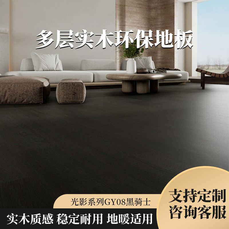 光影系列GY08黑骑士 诧寂极简基调 进口木皮多层实木地板地暖适用