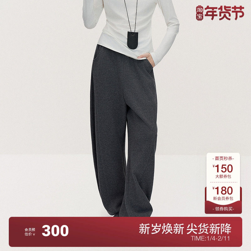 ochirly欧时力弯刀阔腿毛织长裤运动风时尚别致2025春季新款