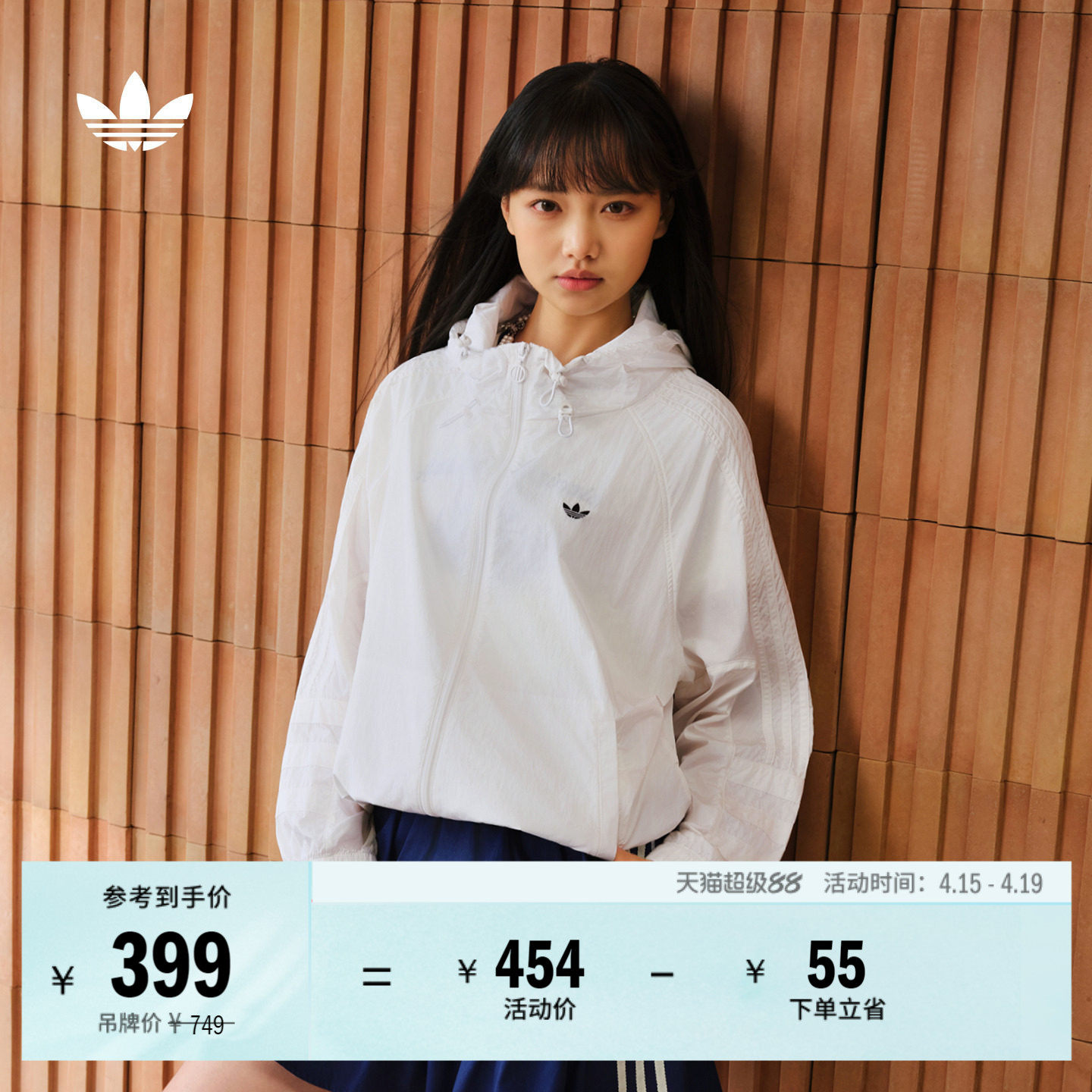 简约通勤百搭宽松运动连帽薄外套女春季新款adidas阿迪达斯三叶草