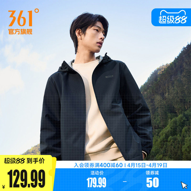 361运动外套男2026春季防风防泼水冲锋梭织夹克户外连帽立领风衣