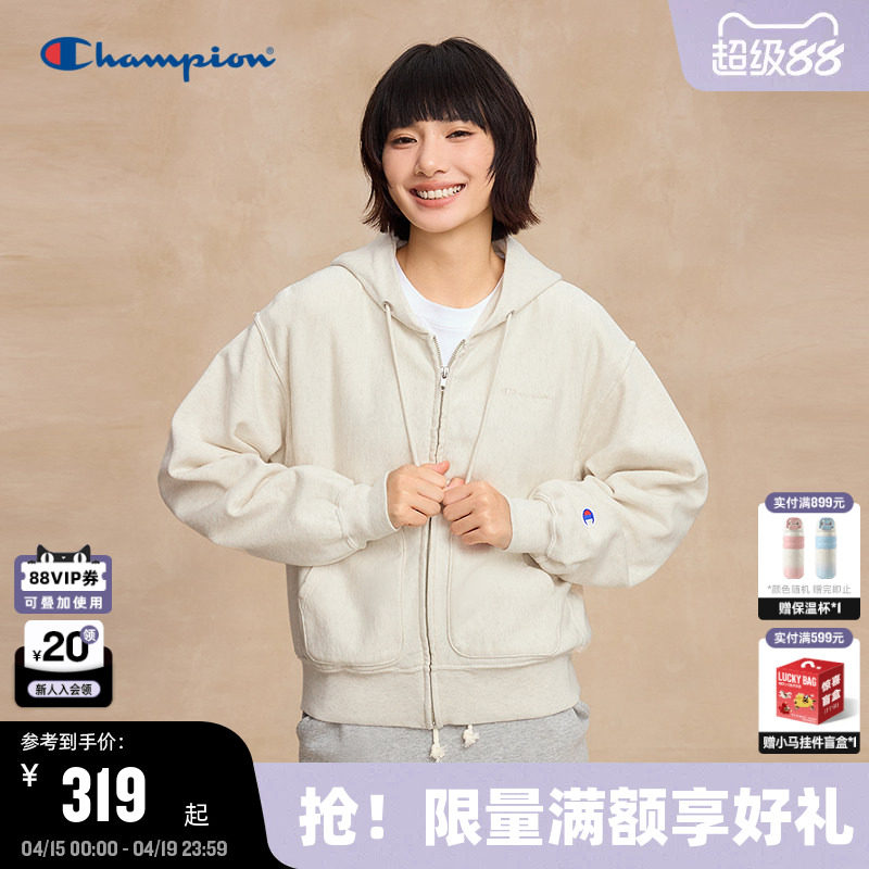 Champion冠军连帽卫衣女25秋季新款小元气少女风纯棉外套拉链开衫